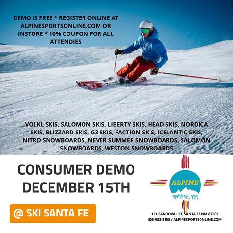 2022 ANNUAL SKI SWAP! Nov. 18th & 19th at the Santa Fe Convention ... Santa Fe, NM 87501 800-777-2489 New winter sports gear at huge discounts & lots of used gear too! FRIDAY, NOVEMBER 18th and SATURDAY, NOVEMBER 19th Friday 12-4pm Equipment Check-In ($2 concession per used item) Note: The Santa Fe Ski Team requires all unsold items posted for sale at the swap be picked up SATURDAY between 4pm - 6pm.